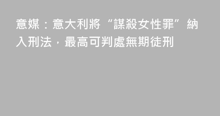 綜合安莎通訊社、《24小時太陽報》等意大利媒體報道,11月25日,在聯合國設立的“國際消除對婦女暴力日”當天,意大利議會一致通過一項重要立法,將凡是出於性別歧視、仇恨或試圖通過控制、支配和佔有等手段導致女性受害者死亡的案件,定性爲“謀殺女性罪”,該罪名將作爲獨立法條納入刑法,最高可判處無期......