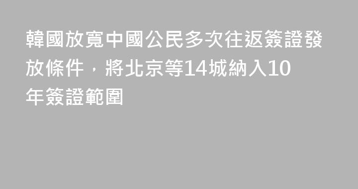綜合韓聯社、《韓民族日報》等韓媒3月31日報道,韓國政府放寬中國公民多次往返簽證發放條件,將北京、上海等14個城市納入10年簽證範圍,並延長簽證有效期,以吸引更多中國遊客和商務人士訪韓,提振旅遊及服務消費。韓國駐華大使館表示,該政策已於3月30日實施。根據新規,北京、上海、廣州、深圳等14個......