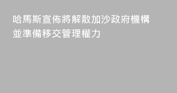 新華社加沙1月10日電巴勒斯坦伊斯蘭抵抗運動(哈馬斯)10日宣佈,將解散管理加沙地帶事務的行政機構。哈馬斯發言人在一份給媒體的聲明中說,哈馬斯已決定,將解散所有監管加沙地帶事務的行政機構,並將管理職責移交給一個獨立的技術官員委員會。聲明表示,哈馬斯已準備好爲委員會接管職責提供便利,呼籲加......