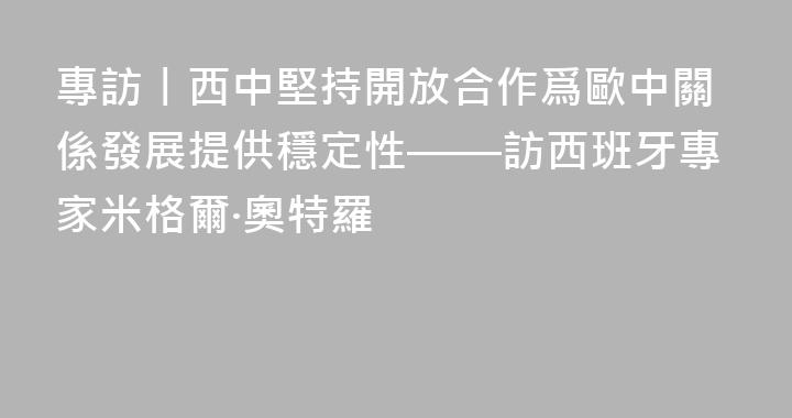 新華社馬德里12月21日電專訪丨西中堅持開放合作爲歐中關係發展提供穩定性——訪西班牙專家米格爾·奧特羅新華社記者孟鼎博謝宇智西班牙IE大學教授、埃爾卡諾皇家研究所研究員米格爾·奧特羅日前接受新華社記者採訪時表示,在全球保護主義和貿易壁壘抬頭的背景下,西班牙和中國仍堅持開放合作與多邊主義,這不......