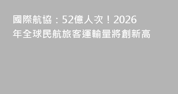 新華社北京12月10日電國際航空運輸協會9日預計,2026年全球航空業旅客運輸量將達到創紀錄的52億人次。國際航空運輸協會9日發佈對全球航空業的最新展望數據。2025年全球航空業的旅客運輸量預計達49.8億人次,2026年預計將達52億人次,比2025年增長4.4%,創下歷史新高。根據預測......