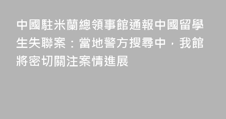 近日,中國留學生黃某(男,28歲)在意大利北部多洛米蒂山區失聯。我館接到求助後,立即啓動領保應急機制,第一時間向當地警察和憲兵瞭解情況,要求警方高度重視,全力開展搜尋,及時通報結果。目前,警方搜尋工作正在進行中。我館將密切關注案情進展,向當事人家屬提供必要協助。駐米蘭總領館再次提醒領區中......