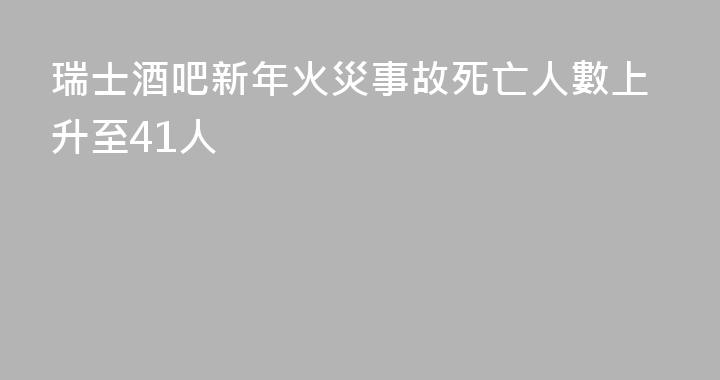 總檯記者當地時間2月1日獲悉,一名在瑞士克朗-蒙大拿酒吧新年火災事故中的傷者離世,年僅18歲。瑞士瓦萊州檢察官辦公室當天表示,這使得該火災事故死亡人數上升至41人,另有115人重傷。檢察官辦公室沒有提供有關調查的最新進展。瑞士阿爾卑斯山區滑雪小鎮克朗-蒙大拿一家酒吧當地時間1月1日凌晨起火爆炸......