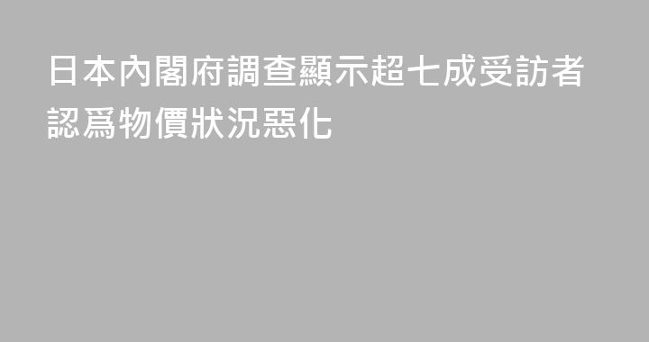 日本內閣府當地時間12月19日公佈的一項年度調查顯示,超七成受訪者認爲物價領域狀況惡化。調查結果顯示,被問及社會哪些領域的狀況惡化時,73%的受訪者認爲是物價,佔比最高,同時創下自1998年開始調查這一問題以來的最高值。52%的受訪者認爲是日本經濟形勢,41%的受訪者認爲是日本國家財政,佔比分列第......