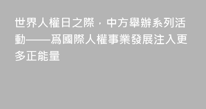 世界人權日之際,中方舉辦系列活動——爲國際人權事業發展注入更多正能量