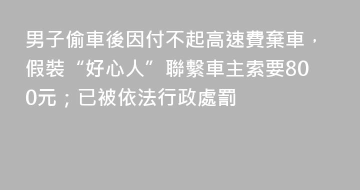 男子偷車後因付不起高速費棄車,假裝“好心人”聯繫車主索要800元;已被依法行政處罰
