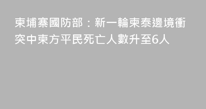 新華社金邊12月9日電(記者吳長偉)柬埔寨國防部9日說,當天凌晨又有2名柬平民在柬埔寨與泰國的邊境衝突中喪生。新一輪邊境衝突已致柬埔寨6名平民喪生。柬國防部發布新聞稿說,泰國軍隊在8日夜間至9日凌晨持續向柬埔寨軍隊和平民開火。“9日0時59分,泰國軍隊加強了對柬埔寨班迭棉吉省邊境地區的攻擊,2......