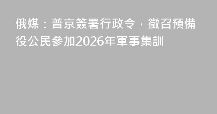 據塔斯社報道,俄羅斯總統普京當地時間8日簽署一項行政令,徵召預備役公民參加2026年軍事集訓。報道稱,根據該行政令,預備役公民將被徵召至俄羅斯聯邦武裝部隊、俄羅斯國民警衛隊、國家安全機構和俄羅斯聯邦安全局下屬機構等單位參加軍事集訓。俄羅斯政府和地方相關部門收到指示,確保落實徵召預備役公民參訓及組織......