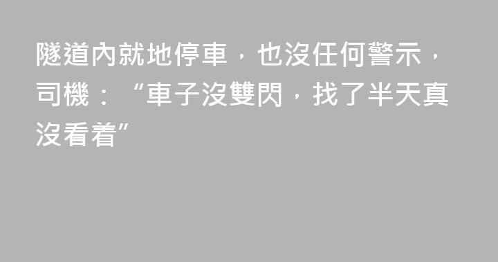 隧道內就地停車,也沒任何警示,司機:“車子沒雙閃,找了半天真沒看着”