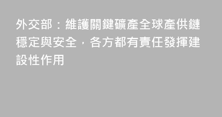 4日,外交部發言人林劍主持例行記者會。彭博社記者提問稱,在華盛頓的幾個國家的外長將討論歐盟提出建立一個關鍵礦產夥伴關係的建議,從而減少對中方的依賴。中方對此有何回應?林劍對此回應稱,在維護關鍵礦產全球產供鏈穩定與安全的問題上,中方的立場沒有變化,各方都有責任爲此發揮建設性作用。林劍稱,關於......
