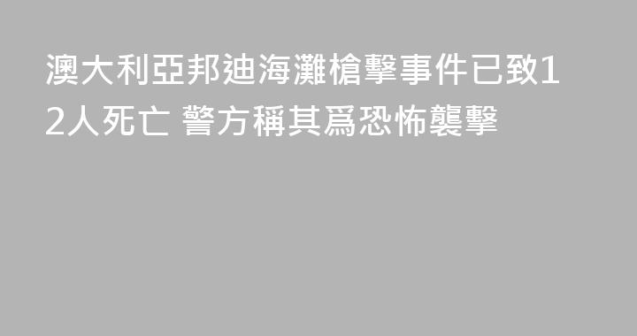 當地時間14日,澳大利亞新南威爾士州警察局長表示,已有12人死於當天邦迪海灘的槍擊事件,其中包括一名槍手。另有29人受傷,正在送往醫院接受救治。警察稱其爲恐怖襲擊,正在進行徹底調查。14日傍晚,澳大利亞悉尼邦迪海灘發生槍擊事件,造成多人死傷。根據警方稍早前消息,兩名嫌疑人一人死亡,一人目......