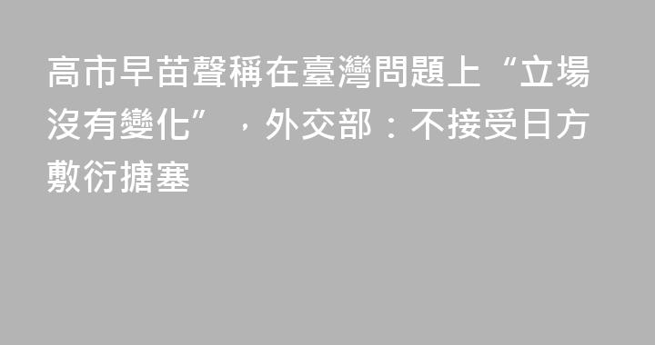 日本首相高市早苗3日在國會接受質詢時稱,日方在臺灣問題上的基本立場沒有變化。隨後有外媒在報道中稱高市早苗援引《中日聯合聲明》,表示“理解和尊重”中國政府關於“臺灣是中國領土不可分割的一部分”的立場,並解讀爲疑似撤回之前的錯誤言論。中國外交部發言人4日指出,據覈實,有關報道不準確。高市首相......