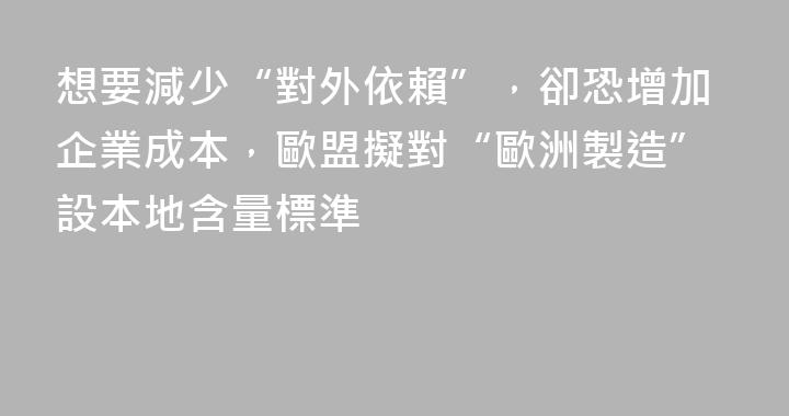 歐盟正在醞釀一項雄心勃勃的產業政策,擬對汽車等關鍵產品設定高達70%的“歐洲製造”本地含量標準,並優先採購本土商品,旨在“減少對外部依賴”。然而這一政策即將公佈之際在歐盟內部引發分歧,有人擔心歐洲產品的價格遠高於亞洲進口產品,這可能會使企業每年的成本增加超過100億歐元,並削弱歐洲產品的......