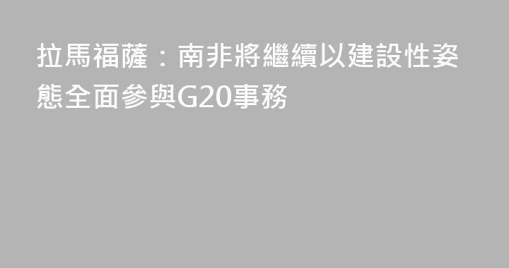 新華社約翰內斯堡11月30日電(記者白舸靳博文)南非總統拉馬福薩11月30日晚發表全國講話,表示南非將繼續以建設性姿態全面參與二十國集團(G20)事務。近日,美國總統特朗普在社交媒體上宣稱,將不邀請南非參加明年在美國舉辦的二十國集團峯會。對此,拉馬福薩回應道:“南非作爲二十國集團正式成員,......