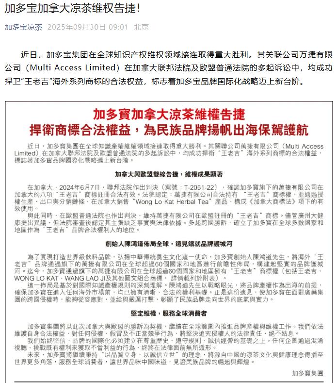 10月10日,加多寶集團(以下簡稱加多寶)的一則回應,令加多寶和廣州王老吉大健康產業有限公司(以下簡稱王老吉)之間持續十餘年的商標之爭再起波瀾。打響海外商標爭奪戰事件起因是近段時間王老吉在海外市場的佈局。今年8月,王老吉正式將英文標識“WALOVI”定爲國際核心品牌,同步推出四款國際罐產品。加多......