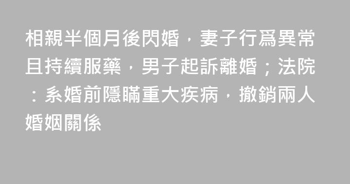 近日,河南省汝南縣人民法院審結了一起一方婚前隱瞞身患精神分裂症而登記結婚的婚姻糾紛案。2024年12月,田某(男)與張某經媒人曹某、楊某牽線相識。在媒人的介紹下,田某認爲張某曾患抑鬱症但已治癒,最多隻是喫藥鞏固,於是坦然接受,並於半個月後與張某登記結婚。婚後,田某發現張某某些行爲異常且持續服......