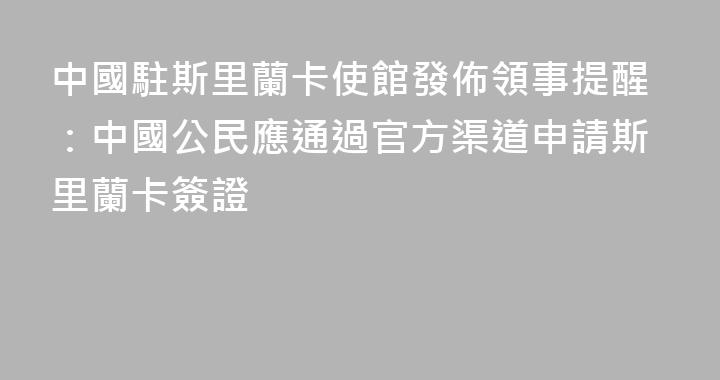 近期,我館接到一些在斯中國公民報案,稱個別在斯中國公民自稱能代辦斯里蘭卡簽證,在索取高額服務費並取走護照等辦理材料後,不僅未能辦理簽證,還導致當事人經濟損失嚴重、簽證過期、護照長期被扣留甚至無法取回等問題。中國駐斯里蘭卡使館特此提醒:申請斯里蘭卡簽證,應通過斯里蘭卡移民局官方渠道進行。中......