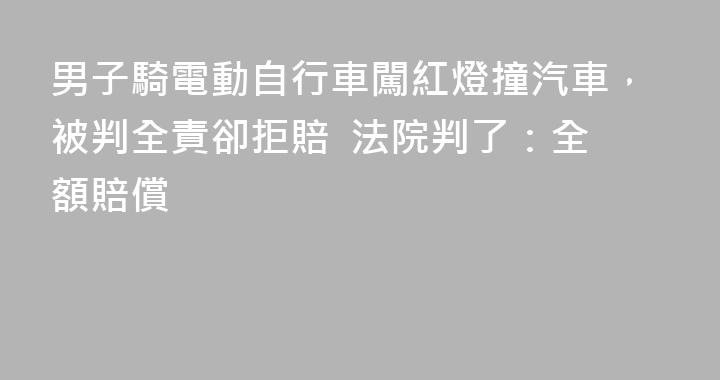 湖南衡陽一男子騎電動自行車闖紅燈,與正常行駛的小車碰撞,交警認定電動自行車方全責後,男子卻堅稱機動車一方無權要求電動自行車賠償。10月9日,記者從裁判文書網獲悉,衡陽市中級人民法院終審判決電動自行車司機全額賠償。電動自行車闖紅燈撞小騎車後拒賠今年5月,劉航騎着二輪電動車沿衡陽市蒸陽南路由......