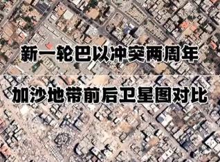 自2023年10月7日,新一輪巴以衝突已持續兩年。戰爭令加沙地帶滿目瘡痍,讓我們通過一組衝突前後的衛星對比畫面直觀感受這片狹長地帶發生了怎樣的變化。視頻製作:高巍......