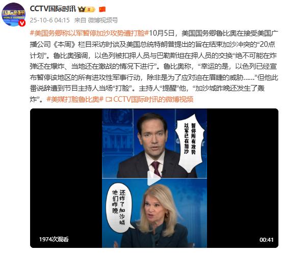 10月5日,美國國務卿魯比奧在接受美國廣播公司《本週》欄目採訪時談及美國總統特朗普提出的旨在結束加沙衝突的“20點計劃”。魯比奧強調,以色列被扣押人員與巴勒斯坦在押人員的交換“絕不可能在炸彈還在爆炸、當地還在激戰的情況下進行”。魯比奧稱,“幸運的是,以色列已經宣佈暫停該地區的所有進攻性軍事行......