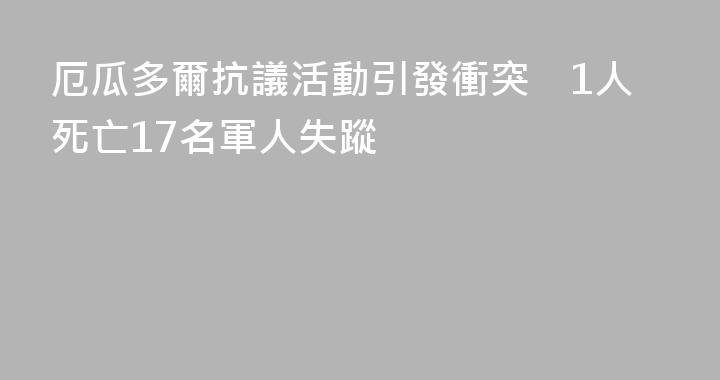 新華社基多9月29日電(記者廖思維)厄瓜多爾政府發言人卡羅琳娜·哈拉米略29日說,因政府取消柴油補貼引發大規模抗議,示威者與安全部隊上週末在厄北部因巴布拉省爆發衝突,造成1名平民死亡、12名軍人受傷、17名軍人失蹤。據當地媒體報道,衝突從27日晚上開始,一直持續到28日。死者是因巴布拉省科塔......