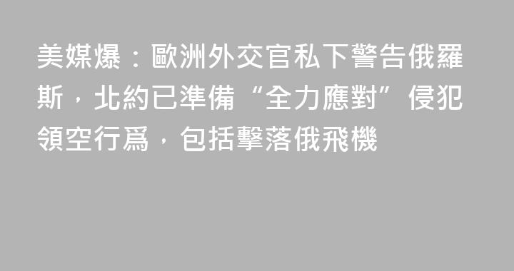 據美國彭博社25日報道,知情人士透露,有歐洲外交官本週在與俄羅斯方面舉行的一次會談中警告,北約已準備好全力應對進一步侵犯其領空的行爲,包括擊落俄飛機。俄方此前否認“戰機侵犯愛沙尼亞領空”說法。彭博社稱,歐洲外交官私下向俄羅斯發出了這一警告。據知情人士透露,在莫斯科舉行的一場氣氛緊張的會談中,......