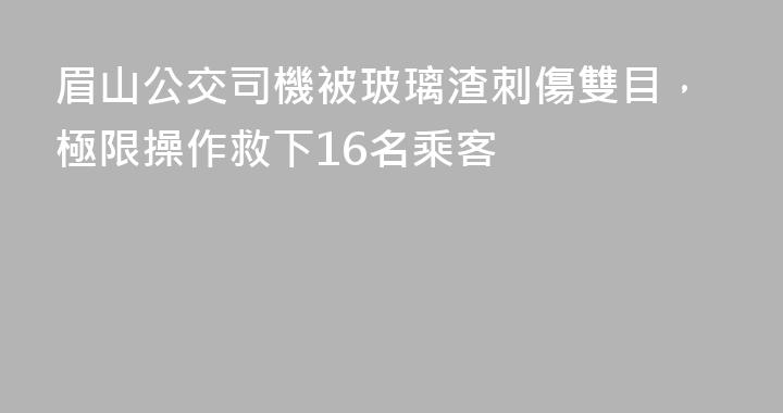 9月22日上午9時40分,在眉山市仁壽縣的一條國道上發生驚險一幕。39歲的仁壽公交公司司機李林駕駛16路公交車載着16名乘客沿着國道213向文宮方向正常行駛。行至義和站附近時,一塊突然飛來的鋼筋擊碎了前擋風玻璃,飛濺的玻璃渣刺傷了李林的雙眼,使其視力幾近失明,臉部開始流血。危急時刻,他憑藉着過硬的......