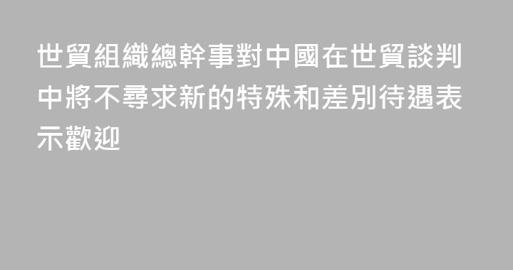 新華社日內瓦9月24日電(記者焦倩)世界貿易組織總幹事伊維拉24日對中國宣佈在世貿組織當前和未來談判中不尋求新的特殊和差別待遇表示歡迎,稱讚此舉發出了支持世貿組織改革的強有力信號。美國當地時間9月23日,在紐約聯合國總部由中方主辦的全球發展倡議高級別會議上,中方宣佈:中國作爲負責任的發展中大國,......