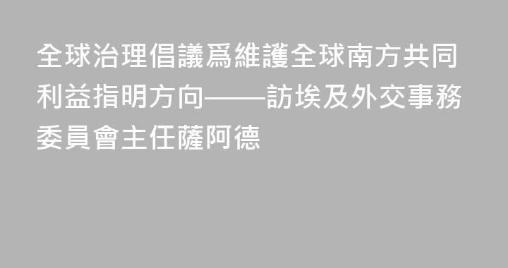 新華社開羅9月22日電題:全球治理倡議爲維護全球南方共同利益指明方向——訪埃及外交事務委員會主任薩阿德新華社記者姚兵董修竹埃及外交事務委員會主任、前資深外交官伊扎特·薩阿德日前在開羅接受新華社記者專訪時表示,全球治理倡議契合全球南方需要,爲維護全球南方共同利益、縮小南北發展差距指明瞭方向......