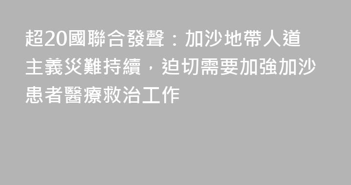 據路透社等媒體22日報道,包括加拿大、法國在內的超過20個國家發表聯合聲明,敦促以色列解除針對向加沙運送藥品和醫療設備的限制。根據加拿大方面22日發佈的消息,加拿大、奧地利、比利時、丹麥、法國、德國等多個國家發表聯合聲明稱,隨着加沙地帶的人道主義災難持續,迫切需要加強對加沙患者的醫療救治......
