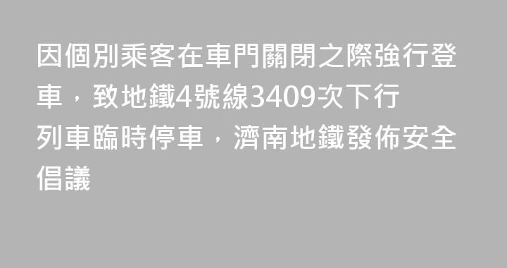 今天,濟南軌道交通集團運營有限公司發佈倡議書,乘坐地鐵“搶上搶下”隱患多,倡議在站臺黃色安全線內排隊候車,遵循“先下後上”原則,有序上車。原文如下:大家好!12月28日16時31分,濟南軌道交通4號線3409次下行列車(開往第一醫科大學方向)停靠轉山西路(萬象城)站時,個別乘客在車門關閉之際......