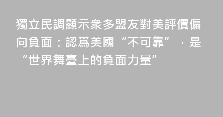 據美國政治新聞網23日報道,該網站與總部位於倫敦的獨立民調機構“第一公衆”聯合進行的民意調查顯示,在美國政府推動大規模外交政策改革後,美國衆多親密盟友對其評價偏向“負面”:“不可靠”“製造的問題多於解決的問題”,是“世界舞臺上的負面力量”等。政治新聞網稱,該調查結果清晰展現出,美國政府通......