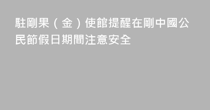 元旦、新春佳節將至,中國駐剛果(金)使館預祝全體在剛中國公民節日快樂、闔家幸福,並提醒加強安全防範,平安過節。一、危地不往、亂地不去。近期,剛果(金)東部安全形勢急劇惡化,多地武裝衝突持續升級。中國公民切勿前往剛東部北基伍、南基伍、伊圖裏、上韋萊等省,亦不得從盧旺達、烏幹達、布隆迪、坦桑......