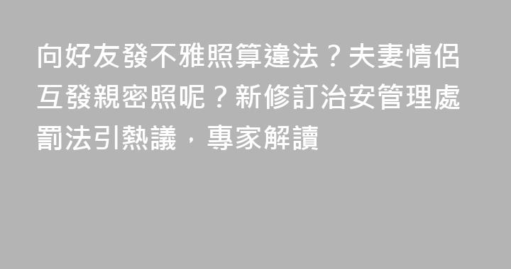 2026年1月1日起,新修訂的《中華人民共和國治安管理處罰法》將正式施行。近日,有媒體報道稱,“明年起,向好友發送不雅照片、視頻構成違法,最高拘15天,罰5000元”,並將其作爲新修訂的《中華人民共和國治安管理處罰法》的立法亮點予以傳播。多位法律人士公開表示,“向好友發不雅照片算違法”屬於誤讀,......