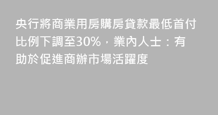 1月15日,中國人民銀行新聞發言人、副行長鄒瀾表示,將會同金融監管總局將商業用房購房貸款最低首付比例下調至30%,支持推動商辦房地產市場去庫存。中指研究院相關負責人表示,此前商業用房(包括商鋪、寫字樓、酒店、商業綜合體等)貸款最低首付比例爲50%,本次央行提及將首付比例降至30%,可直接降低購......