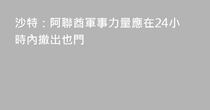 新華社利雅得12月30日電(記者羅晨王海洲)沙特阿拉伯外交部30日發表聲明說,阿聯酋有必要響應也門的要求,在24小時內撤出其在也門的軍事力量,並停止向也門境內任何一方提供任何形式的軍事或財政支持。沙特希望阿聯酋採取必要措施,維護沙阿兩國關係。聲明說,沙特對阿聯酋向也門南方過渡委員會施壓、推動......
