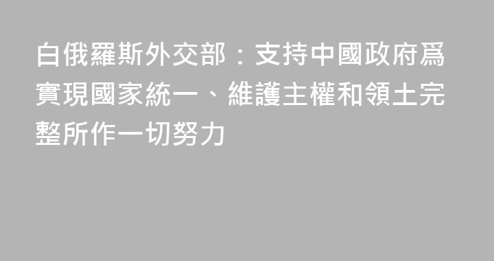 據白俄羅斯國家通訊社報道,白俄羅斯外交部12月30日發表聲明稱,白俄羅斯密切關注臺海局勢發展情況。“我們支持中國政府爲實現國家統一、維護主權和領土完整所作一切努力。”白俄羅斯外交部在聲明中稱,任何國家都無權干涉他國內政或施加壓力,包括通過政治、金融、軍事等手段。“這種行爲會加劇緊張局勢,破......