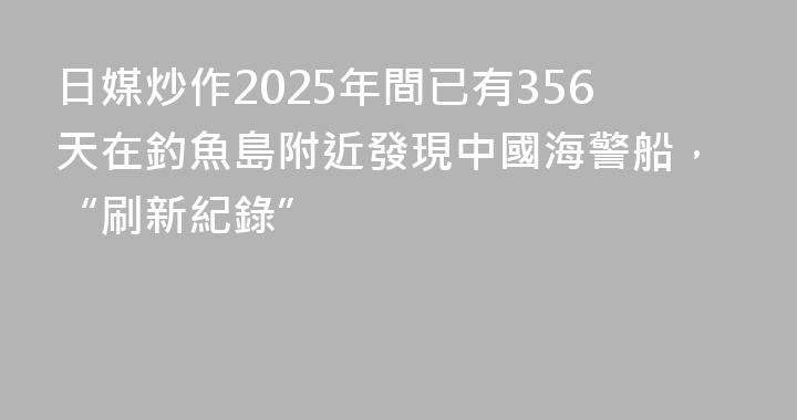 據日本共同社報道,日本海上保安廳12月30日發現中國海警船在釣魚島附近海域航行。日媒炒作稱,2025年期間,在釣魚島附近海域發現中國海警船的天數已達356天,超過去年的355天,刷新最多紀錄。中國外交部表示,釣魚島及其附屬島嶼自古以來就是中國的固有領土。釣魚島主權歸屬歷史經緯清楚,法理依據確鑿。中......