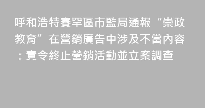 情況通報近日,我局關注到網絡平臺反映“崇政教育”在營銷廣告中涉及不當內容,迅速依法介入調查。經覈查,該廣告內容涉嫌違反《中華人民共和國廣告法》有關規定,已責令該機構立即終止營銷活動,並依法立案調查,最終處理結果將及時公佈。賽罕區市場監督管理局2025年12月30日......