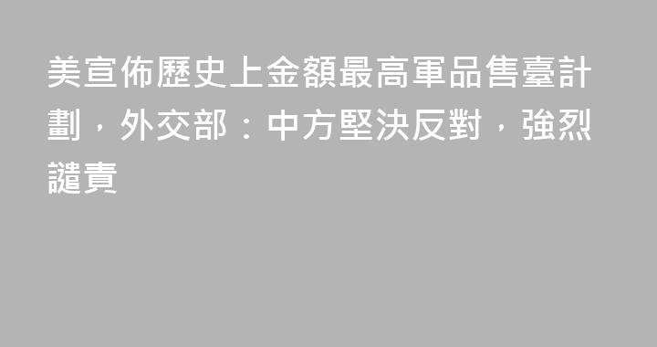 美宣佈歷史上金額最高軍品售臺計劃,外交部:中方堅決反對,強烈譴責