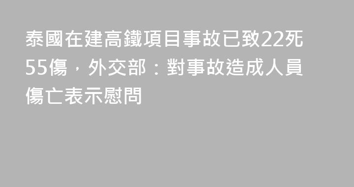 據泰國媒體14日報道,當天發生在泰國呵叻府在建高鐵項目的事故死亡人數升至22人,另有55人受傷。在14日的外交部例行記者會上,有媒體問詢稱,該高鐵項目旨在連接中國和泰國,據稱中國是該項目的合作方之一,請問中方對此次事故有何回應?是否掌握更多情況?對此,中國外交部發言人毛寧表示,我們注意到有關事......