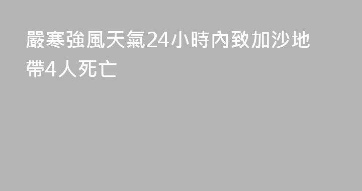 新華社加沙1月13日電(記者黃澤民趙偉宏)巴勒斯坦加沙地帶衛生部門13日發表聲明說,冬季的嚴寒強風天氣在過去24小時內造成加沙地帶4人死亡,其中一名1歲嬰兒死於寒冷天氣,另有3人死於狂風導致的建築倒塌。巴勒斯坦伊斯蘭抵抗運動(哈馬斯)同日發表聲明說,冬季強風肆虐,流離失所者帳篷被摧毀,大量平民無......
