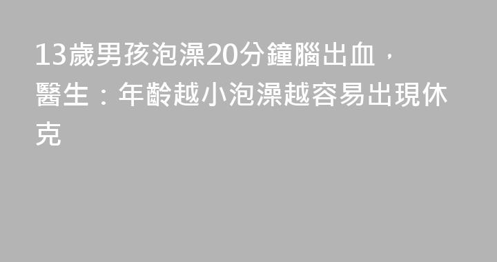 近日,河南鄭州一13歲男孩到澡堂洗澡,泡了20分鐘搓背時,師傅突然發現孩子沒有反應,緊急送醫檢查後發現竟然是腦出血!醫生介紹,問診時孩子父母稱澡堂溫度過高,差不多有40℃,再加上孩子泡澡過程中未及時補充水分,導致出現了顱內出血。醫生提醒:孩子年齡越小,泡澡越容易出現休克,風險越大。男性經......