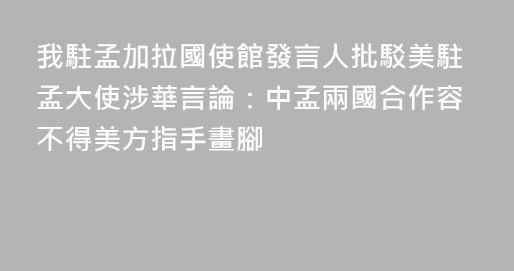 問:據報道,美國駐孟大使日前稱,美方對中國在南亞地區越來越廣泛的影響力表示關切,將向孟方闡明與中國接觸可能帶來的風險。對此中方有何評價?答:美駐孟大使有關言論既不負責任,也毫無事實根據,完全是顛倒黑白,用心叵測。中孟建交50多年來,雙方始終相互支持、平等相待、合作共贏。中孟合作惠及兩國人......