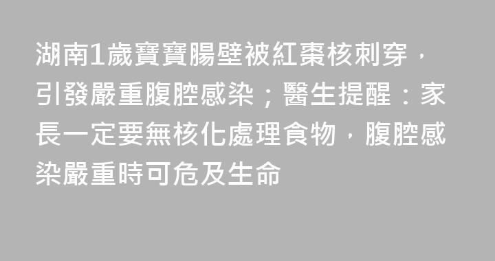 1歲10個月的男童俊俊(化名),誤吞紅棗核,腸壁被刺穿,引發腹腔嚴重感染。1月22日,湖南省兒童醫院醫生提醒,給孩子的食物去核化,孩子喫東西時盯緊人,避免造成傷害。據介紹,俊俊因突然出現嘔吐、發熱,來湖南省兒童醫院就診。普外二科黃召副教授完善了相關檢查,考慮消化道穿孔,隨後緊急進行了手術治療......