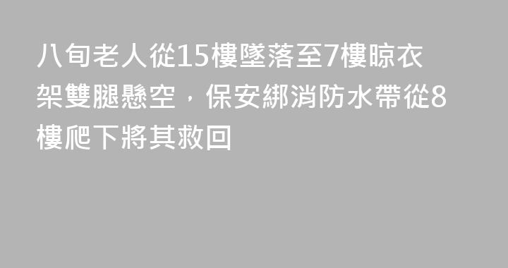 1月4日,有網友社交平臺發佈視頻稱,江蘇南京一小區裏有一名80多歲的老人不慎從15樓墜落,身體卡在7樓窗外晾衣架上,情況危急。記者聯繫到施救者張先生,張先生告訴記者,自己是該小區保安隊長,接到居民求助消息後,第一時間趕赴現場。張先生說,到達時老人已懸掛在7樓窗外,身體隨時有墜落風險,而7樓住......