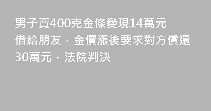 借出14萬元卻要求償還30萬元,這樣的還款要求您見過嗎?男子賣掉400克金條後,將變現的14萬元借給朋友,後因金價大漲,該男子起訴要求按金條現值30萬元償還,法院會支持嗎?1月27日,記者從裁判文書網公佈的一起民間借貸糾紛案瞭解到,遼寧省錦州中院審理認爲,借貸數額應以實際交付爲準,判令按現金借......