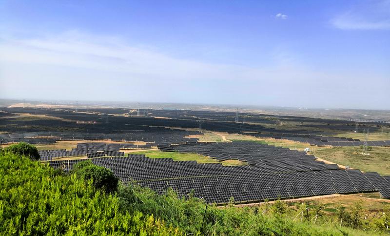 伊金霍洛旗天驕綠能50萬千瓦採煤沉陷區生態治理光伏發電示範項目一角。人民網記者 孫博洋攝