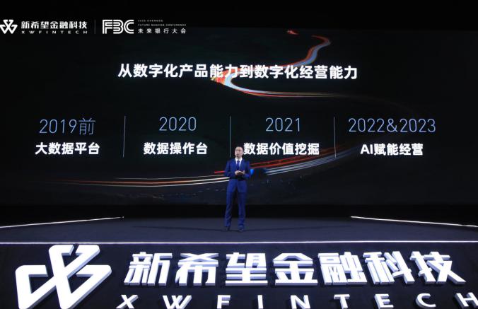 新希望金融科技公司執行總裁呂文勇以《激盪與重塑:AI浪潮下的銀行數字化風潮》爲主題進行了演講。他表示,當前的銀行平均離櫃率已逾90%,全國銀行業的網點數量年均減少約1000個,數字化轉型的必要性和緊迫性進一步凸顯。