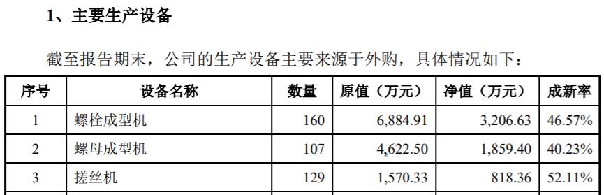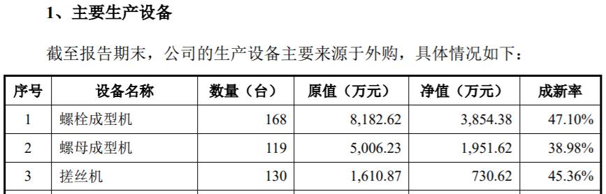 但以螺栓成型機爲例,2021年末擁有的160臺對應原值爲6884.91萬元,折算單臺成本爲43萬元;在2022年內新購置的8臺設備,對應新增固定資產原值達1297.71萬元,折算單臺成本高達162萬元,相當於此前已有同類設備的4倍。